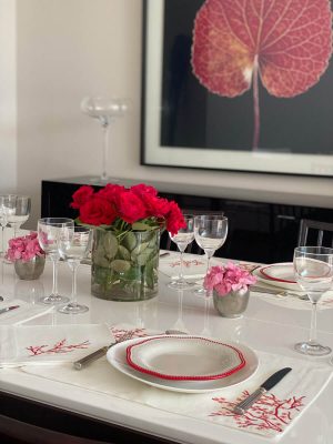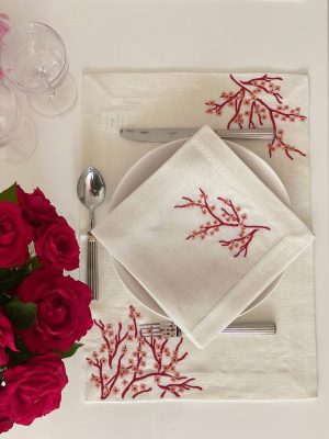 O Individual Almond Bloom é mais do que um simples acessório de mesa; é uma peça charmosa que eleva a sua experiência de refeição. O delicado bordado e o luxuoso linho criam uma atmosfera sofisticada, perfeita para impressionar os seus convidados ou desfrutar de uma refeição especial com aqueles que mais gosta.