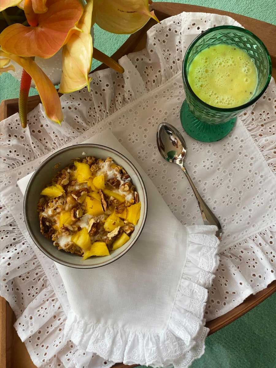 Use-o no pequeno-almoço de bandeja com granola e sumo verde, como na imagem que o inspirou. Use-o num jantar de gala. Use-o numa tarde de chá. A sua elegância não é frágil — é robusta, lavável, duradoura. Melhora com cada uso, com cada lavagem, com cada memória que absorve.